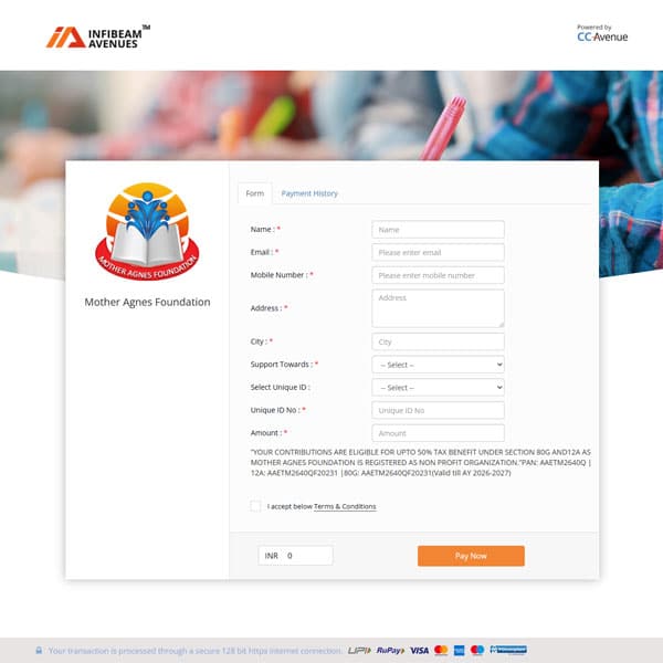 Mother Agnes Foundation was established in 2014 in Telangana, India. A Telangana-based pasture root-level NGO is involved in Charity work for all classes of society. A Team of youth, who have a passion for social service and compassion towards the sufferings of the disadvantaged sections of society, came together and formed “MOTHER AGNES FOUNDATION”.